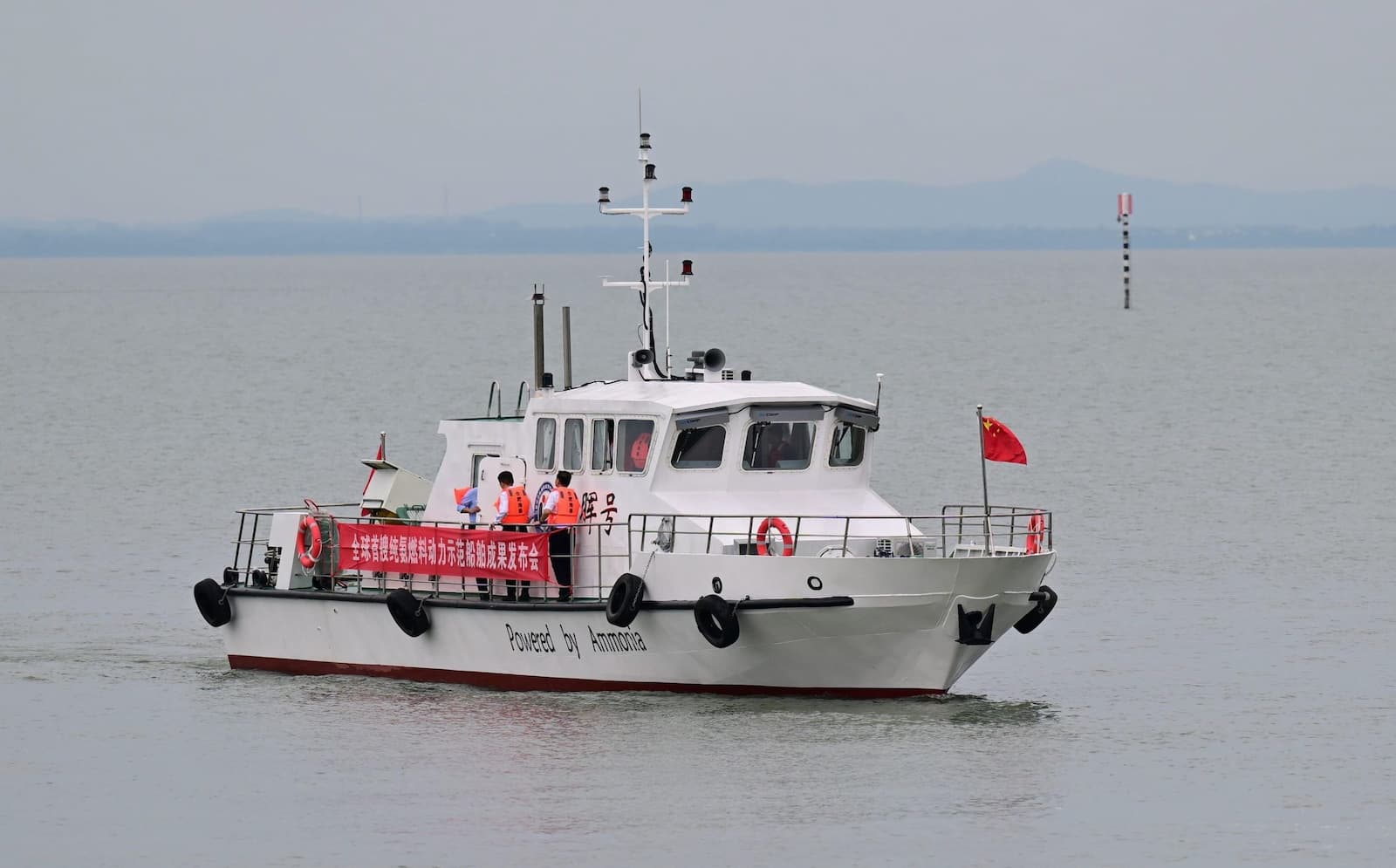 The world’s first pure ammonia-powered demonstration vessel making its maiden voyage in Hefei, Anhui province, June 2025 (Image: Zhou Mu / Xinhua / Alamy)