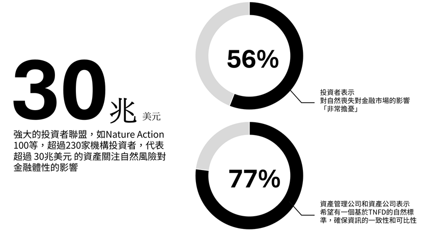 全球約有 125 家中央銀行和監管機構組成的綠色金融系統網絡(Network for Greening the Financial System, NGFS)指出,自然相關風險可能影響宏觀經濟,若未加以考量,可能影響金融穩定。NGFS 正在推動自然情境分析,預期未來將有強制性壓力測試。