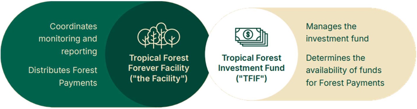 The Tropical Forests Forever Facility (TFFF) introduces a new nature financing mechanism, including a TFFF secretariat and a separate Tropical Forest Investment Fund (TFIF) that invests sponsor contributions in emerging market bonds. (Chart: TFFF)