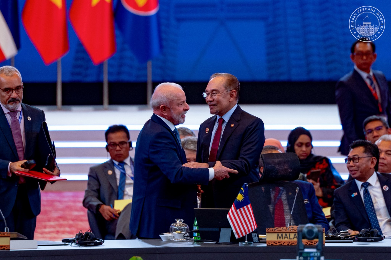 巴西總統魯拉(Luiz Inacio Lula da Silva)出訪與馬來西亞總理安華(Anwar Ibrahim)共同出席領袖會議。(圖片來源:馬來西亞政府)