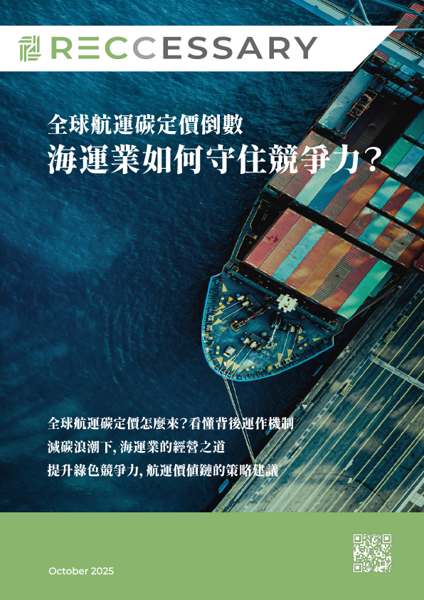 在新能源與碳市場瞬息萬變的今天,掌握第一手資訊就是企業贏家的關鍵。RECCESSARY 市場報告訂閱,專為企業決策者與專業人士打造,提供最完整的政策洞察、碳市場動態、價格趨勢與實務案例分析。無論季度深度報告或年度全景分析,每份報告都以數據為核心,助您精準評估風險、抓住商機。立即訂閱,專屬洞察隨手可得,從綠電採購到碳成本評估,每一份資訊都是推動策略落地的利器。選擇 RECCESSARY,讓市場洞察轉化為企業行動力,領先競爭對手,掌握未來!