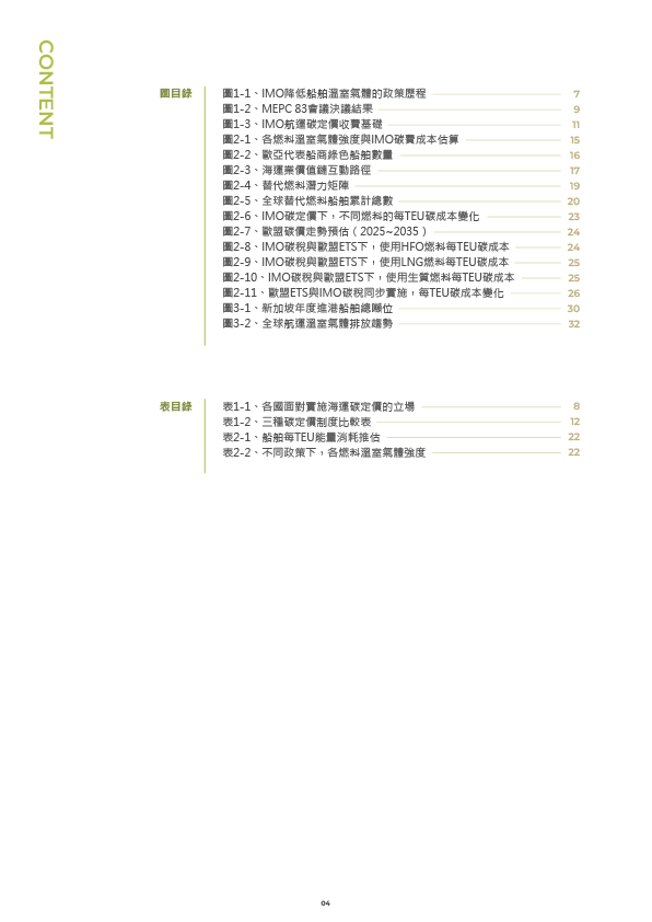 - 本報告將剖析IMO碳定價機制對航運業的潛在衝擊與影響,並進一步探討成本結構、營運模式與競爭策略,提供企業、燃料供應商與政府布局對策,加速產業朝向綠色轉型。